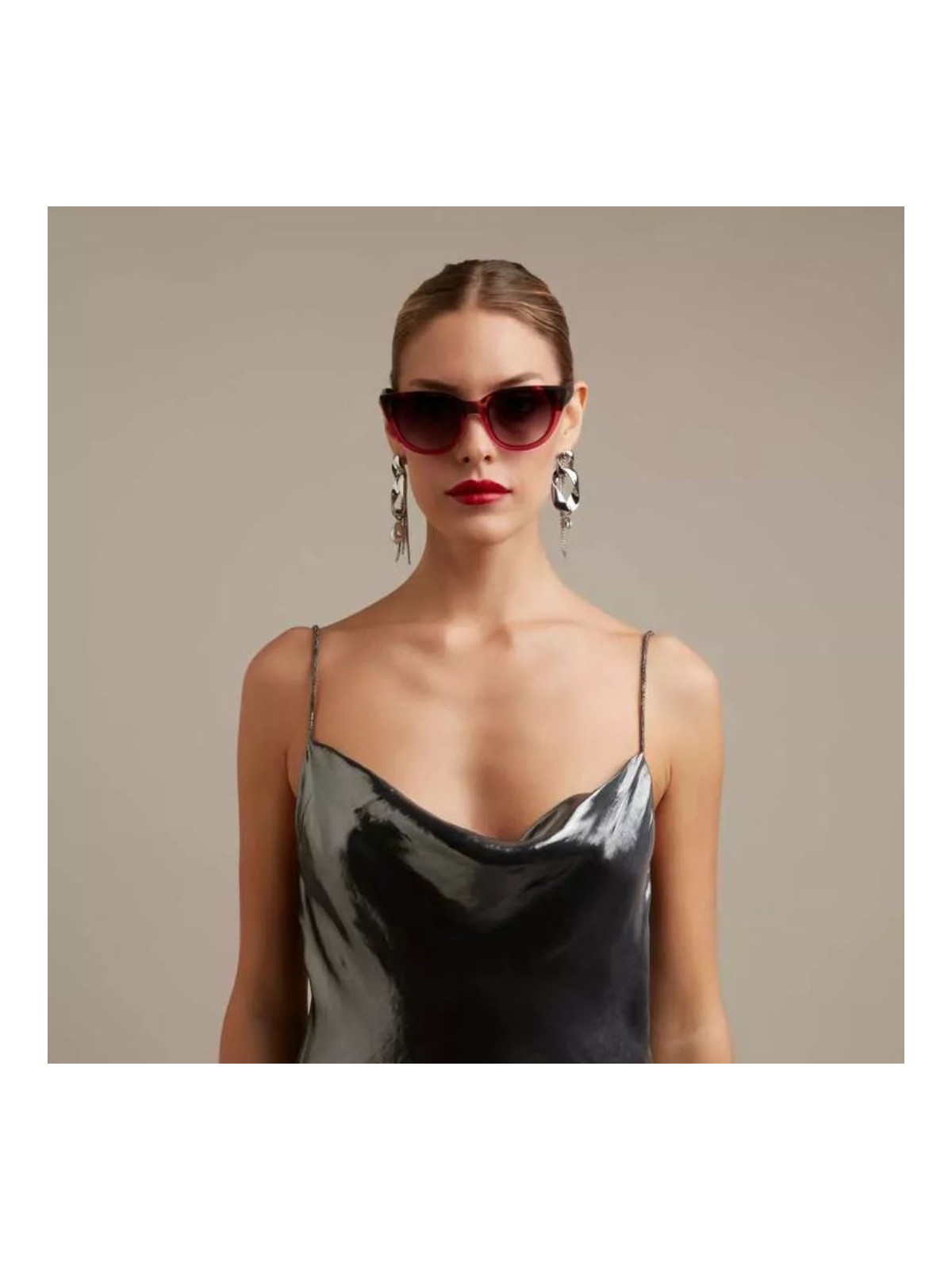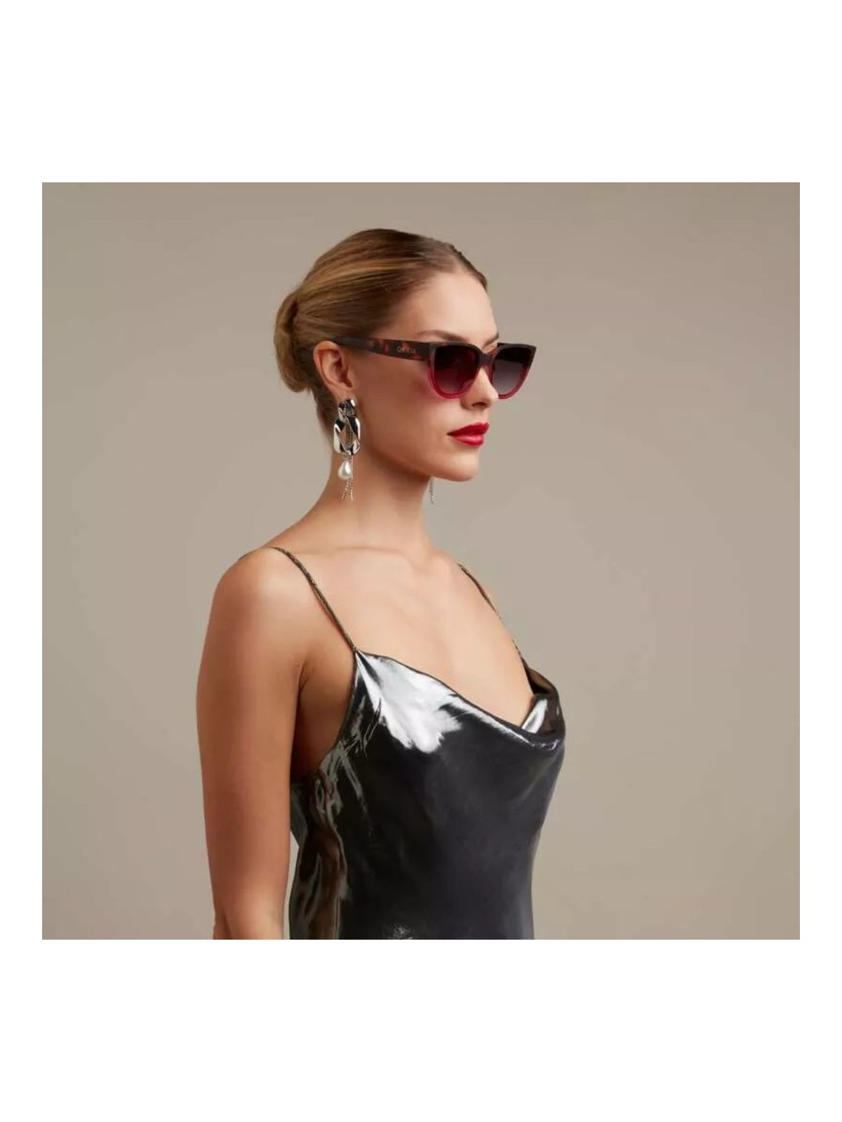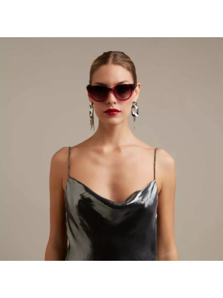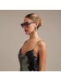 Рамката, поголемите леќи и подигнатите агли го додаваат нејзиниот шарм и мистерија.