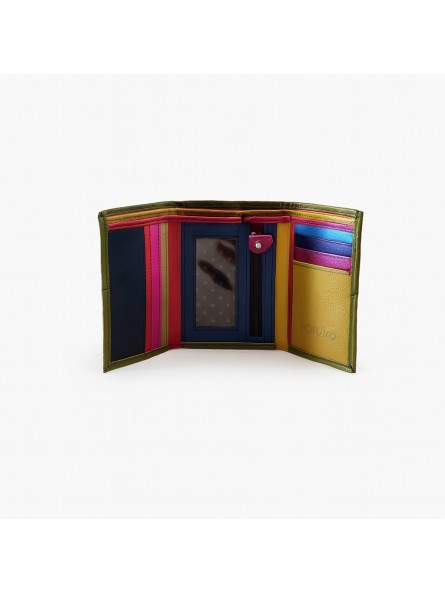 Овој паричник е полн со бои и е совршен за основните работи. Има 3 шарени слотови за картички однадвор, 8 шарени слотови однатре, голем отвор за банкноти или белешки и преклоп со магнет за голема безбедност.Тенкиот дизајн на паричникот Кели прекрасно се вклопува во мали чанти или џебови.