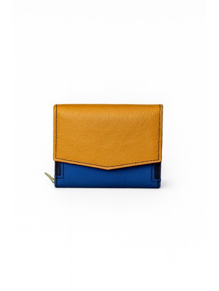 Овој Soruka паричник во комбинација од горчливо жолта и кралско сина боја е малиот детал што внесува голем впечаток. Минималистичкиот дизајн и контрастните тонови му даваат динамика и модерен карактер, додека природната кожа гарантира издржливост и префинето чувство на допир. Рачно изработен од рециклирана кожа, тој претставува совршен спој меѓу функционалност, етика и стил. Идеален за оние што сакаат практичен, но впечатлив аксесоар кој раскажува приказна за одржлива елеганција.