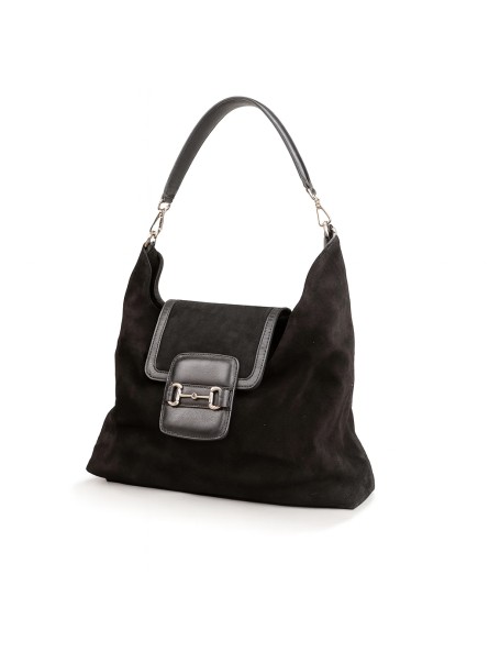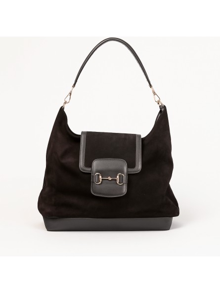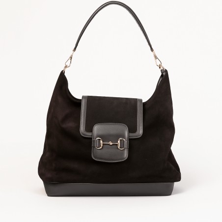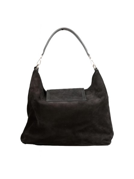 Просторна и елегантна чанта изработена од мека велур кожа, со две внатрешни прегради и дополнителен џеб со патент.